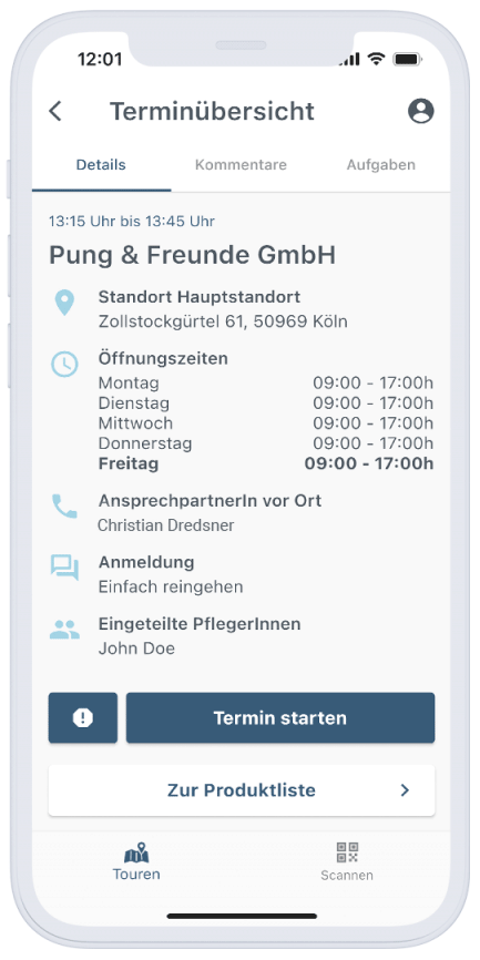 Bei der Ebene wird zwischen Standort, Termin und Produkt unterschieden, damit ein Kommentar dediziert an der richtig Stelle geschrieben wird, um seinen Kontext zu verstehen